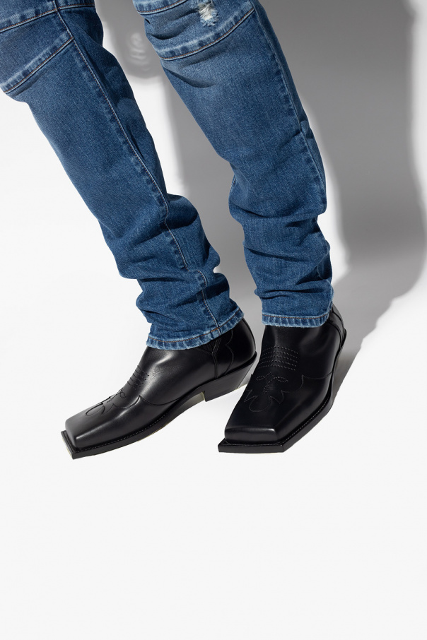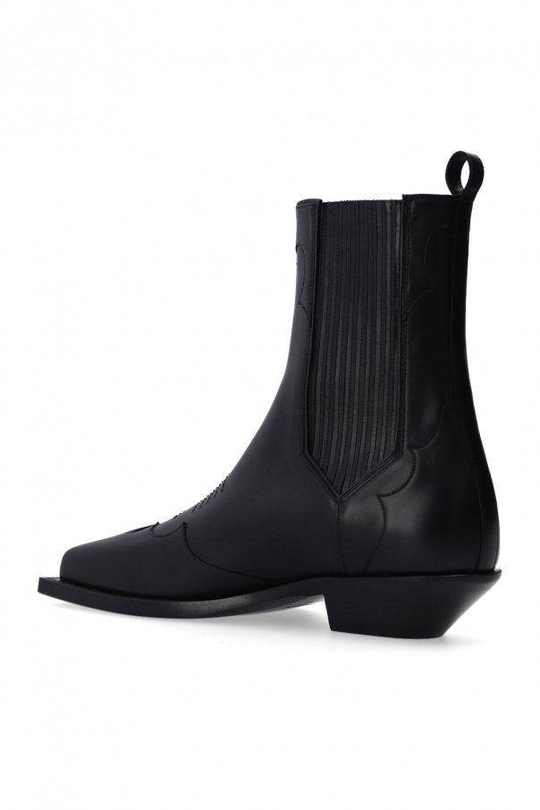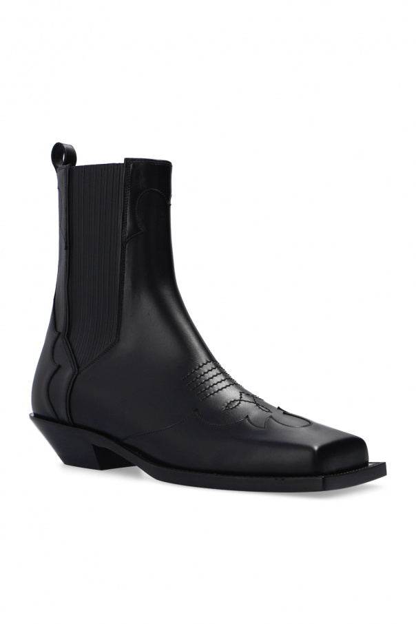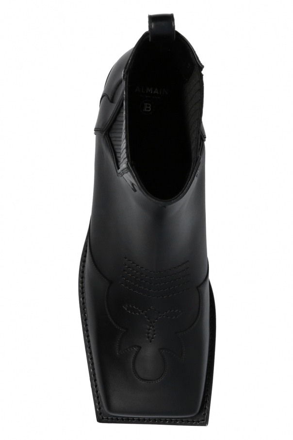 Black heeled ankle boots from Balmain. Made of calf leather, this pair features elastic side panels, decorative stitching details and a black leather sole.