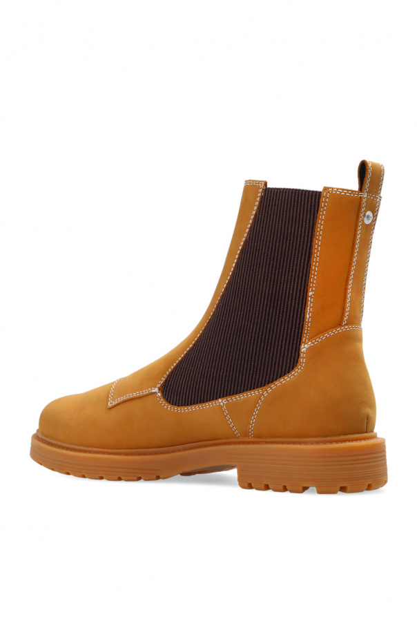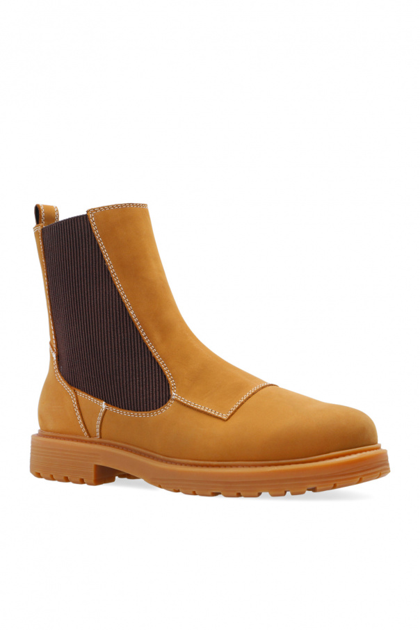 Light brown ‘D-Alabhama’ Chelsea boots from Diesel. Made of cow leather, this model features brown elastic panels on the sides and a light brown rubber sole at the base.