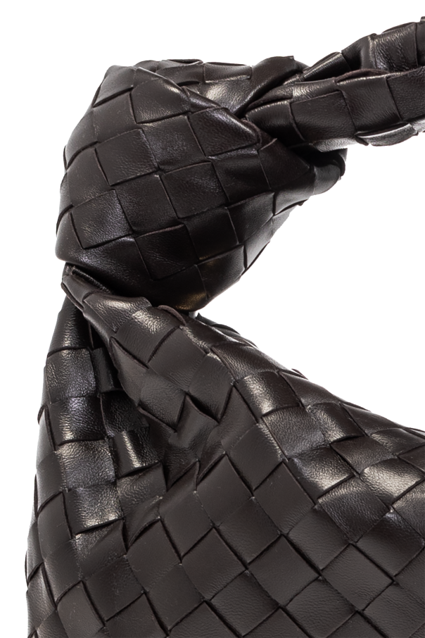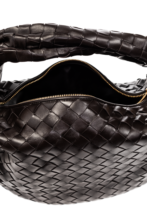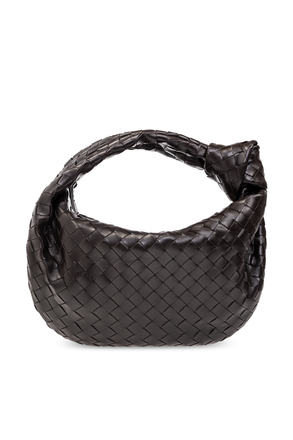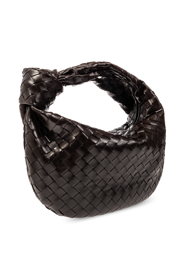 Dark brown ‘Jodie Teen’ shoulder bag from Bottega Veneta. Crafted from lamb leather with the brand’s signature Intrecciato weave, this model is complete with a zip fastening, half-round handle, one internal compartment and silver-tone metal hardware.