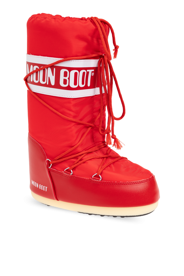 Introducing the Icon Nylon snow boots by the esteemed brand Moon Boot, a paragon of style and functionality for the discerning winter enthusiast. These high-profile boots, extending above the ankle, are meticulously crafted to offer unparalleled warmth and protection against harsh winter conditions. The upper part of the boot is constructed from durable nylon, ensuring resilience and resistance to moisture. The lower part, including the sole, is fashioned from rubber, providing excellent traction and thermal insulation. These materials not only enhance the boot's durability but also contribute to a comfortable and secure fit. Adorned with prominent Moon Boot logos on both the side and back, these boots make a bold statement. The long laces allow for precise adjustment, ensuring the perfect fit. The vibrant red color adds a fashionable touch, making these boots a standout addition to any winter wardrobe. Designed with a thick, cushioning sole, the Icon Nylon boots promise exceptional comfort and protection against the cold. The robust construction and premium materials guarantee a pleasurable wearing experience in even the most frigid temperatures. Why Choose This Product? High-profile design offering superior warmth and protection. Durable nylon upper and rubber sole for moisture resistance and excellent grip. Prominent logos and vibrant red color for a stylish appearance. Adjustable laces for a customized fit. Thick, cushioning sole for enhanced comfort in winter conditions.