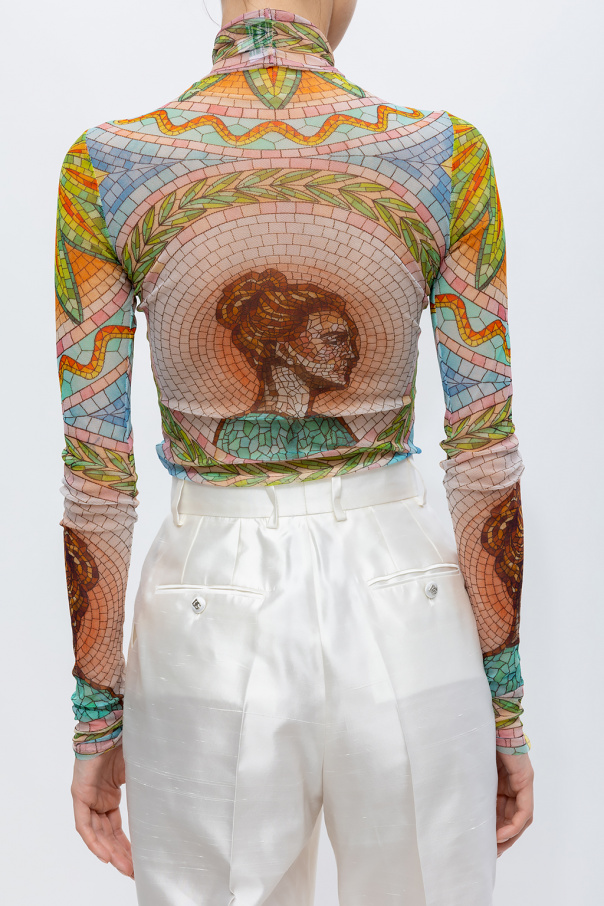 Multicolored transparent top with a decorative pattern and long sleeves from Casablanca.
