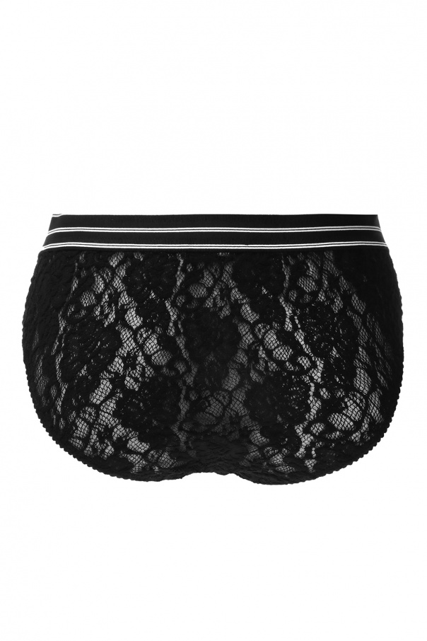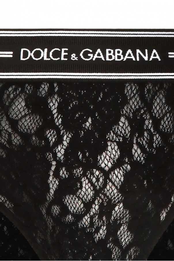 Black lace briefs from Dolce & Gabbana. Elasticated waistband featuring a logo embroidery.