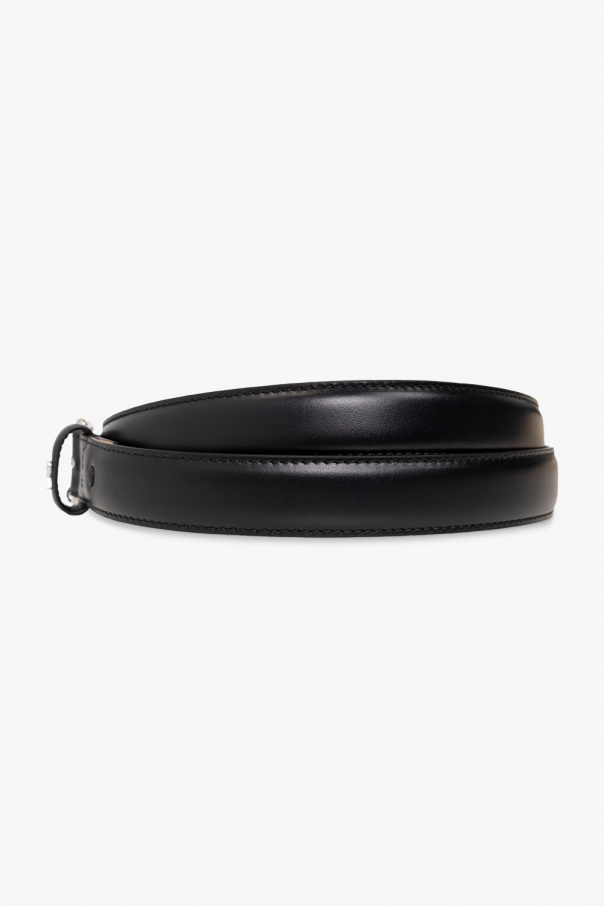 Black belt from Ami Alexandre Mattiussi. Crafted from leather, this item features a silver-tone metal buckle and Ami de Coeur logo appliqué.