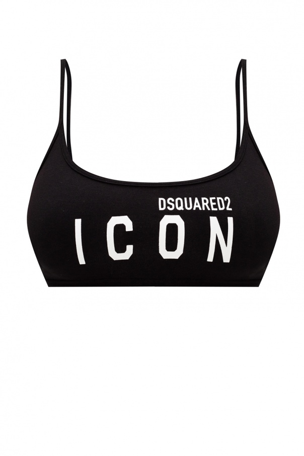 Black sports bra from Dsquared2. Printed with the label's logo in white, this cotton-crafted style is complete with spaghetti straps.