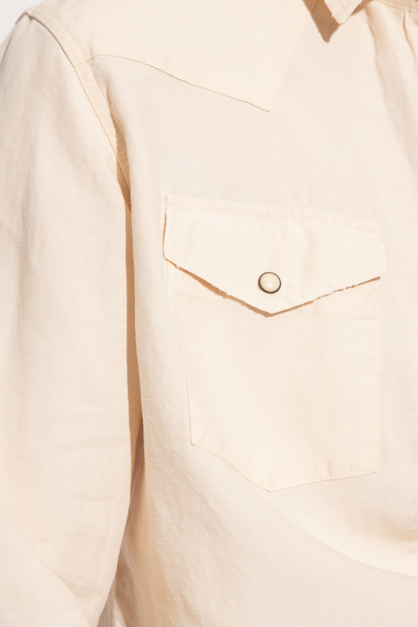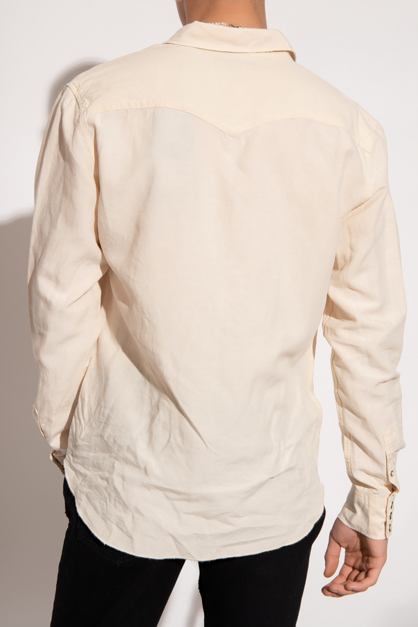 Light beige ‘Bitterwater’ shirt from AllSaints. Fastened with snaps, this model features two snap-fastened flap pockets and long sleeves with snap-fastened cuffs.