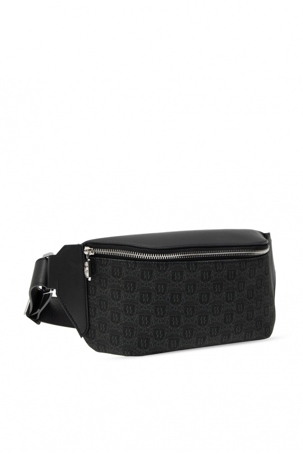 Black and green belt bag from Billionaire. Crafted from calf leather with the label's logo, this design fastens via zip closure and employs an adjustable strap and navy blue clad interior with one compartment.