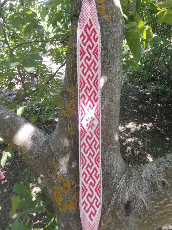 Очілля ручного ткацтва з орнаментом Алатир + Родовик. Алатир приваблює удачу та добробут, виганяє недуги та хвороби, створює в сім'ї гармонійну атмосферу. Родовик — солярний знак, який уособлює зв'язок з родом. Цей символ дарує підтримку від предків, що важливо для фізичного і душевного стану людини. Оберіг захистить від наговорів, позбавить від ілюзій, направить на правильний шлях. Розмір універсальний. Ширина 4 см