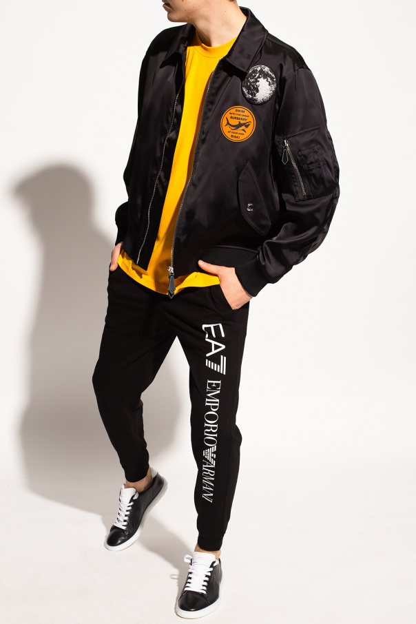 Black sweatpants from EA7 Emporio Armani. Fastened with drawstrings, this design features a white logo print, two front slip pockets and ribbed cuffs.