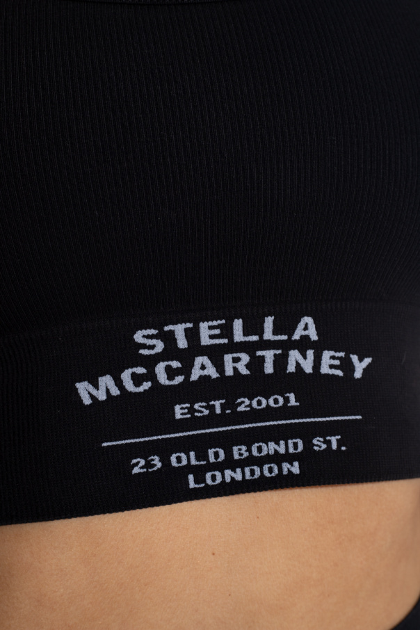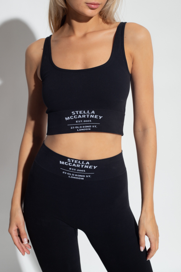 Black tank top from Stella McCartney. Crafted in part from organic cotton and recycled material with a ribbed texture, this style features a cropped fit, an elasticated trim and a white logo on the front.