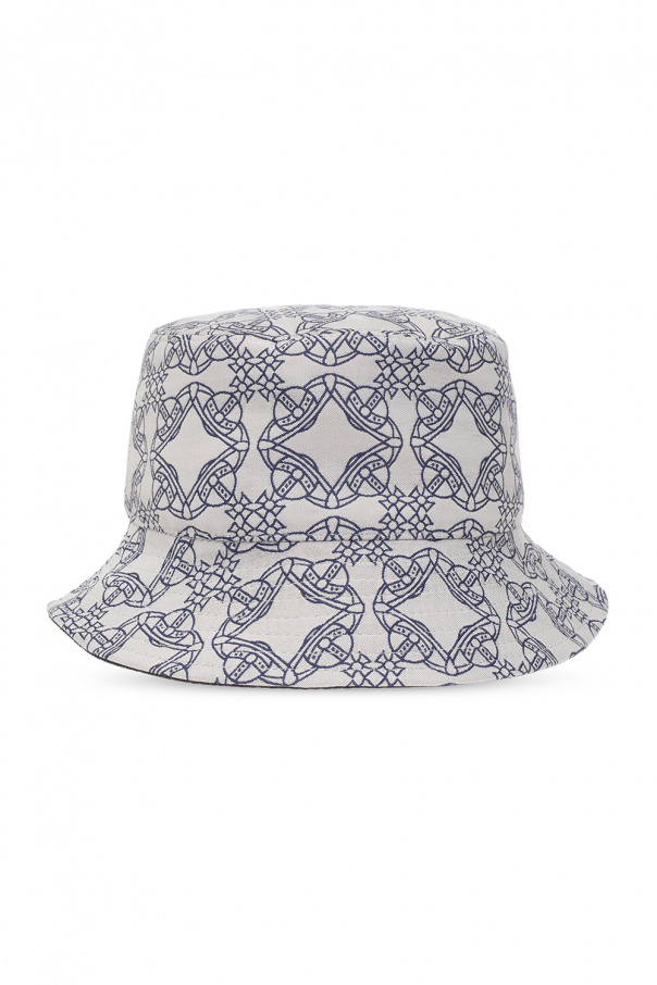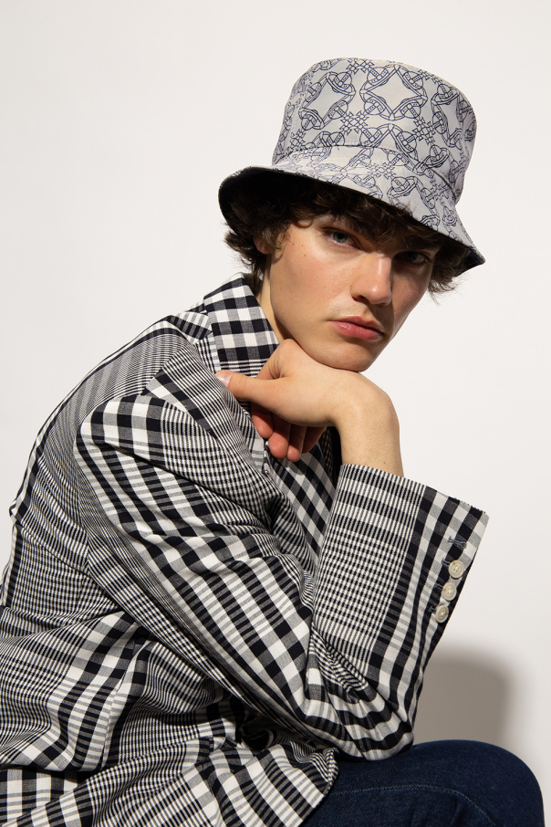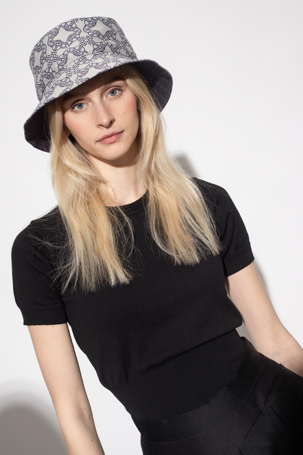 Grey bucket hat from Vivienne Westwood. Made of a cotton blend, this item features an embroidered navy blue monogram.