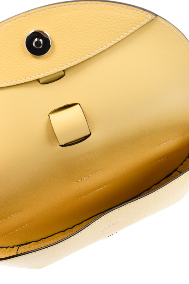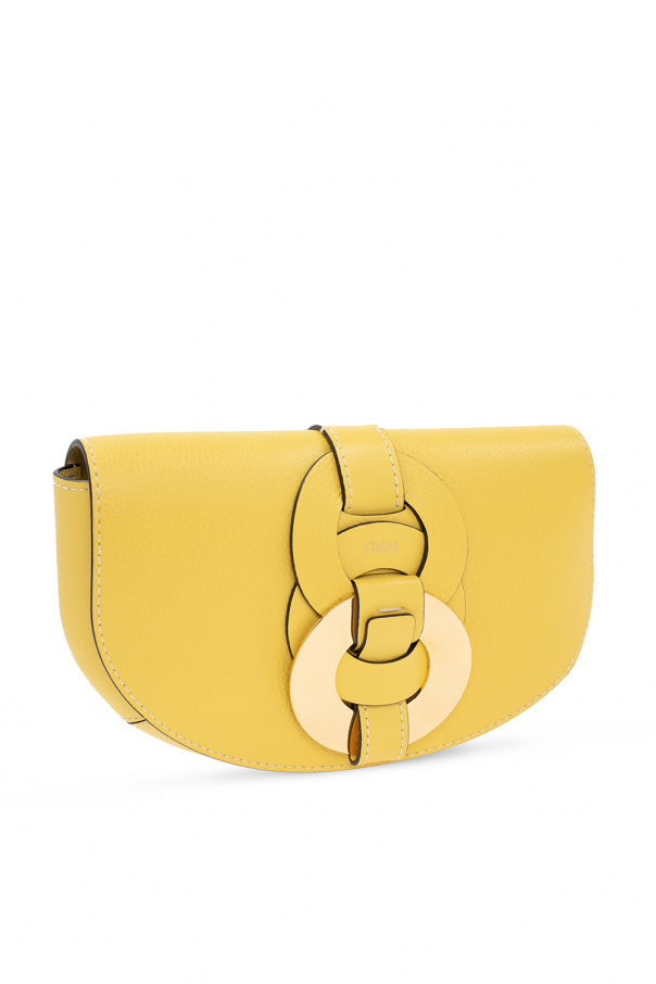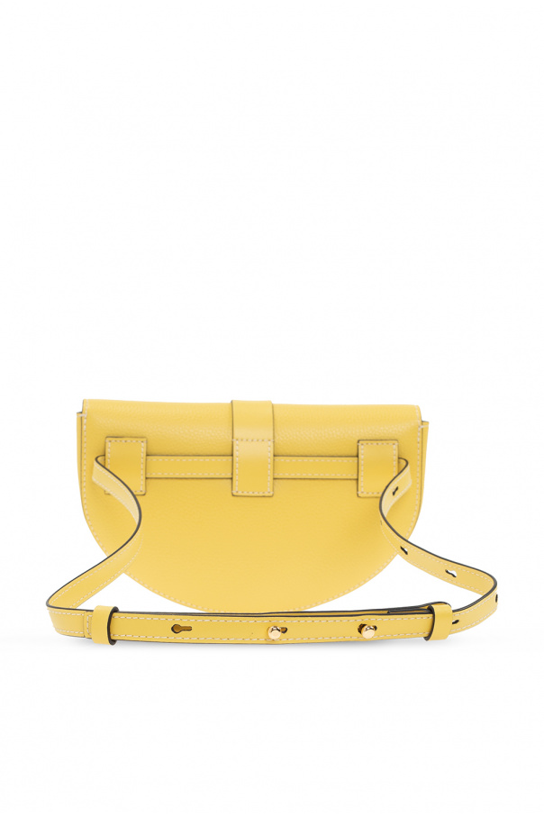 Yellow ‘Darryl’ belt bag from Chloé. Crafted from leather, this design secures with a magnetic fastener and showcases decorative detailing, an appliqué and an embossed gold-tone logo on the front, an adjustable strap, gold-tone metal hardware and one internal compartment.