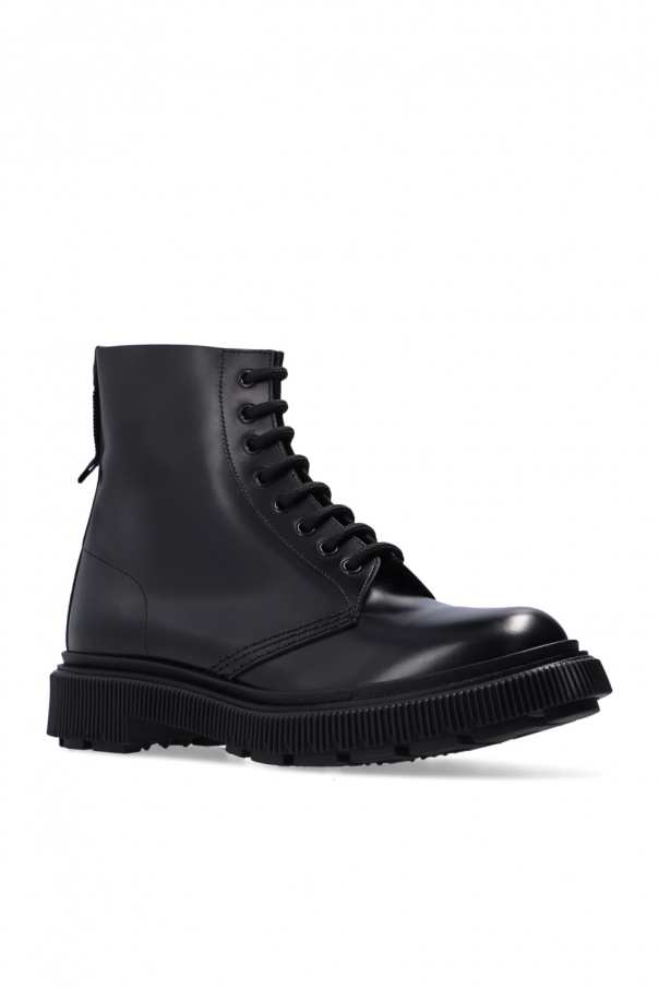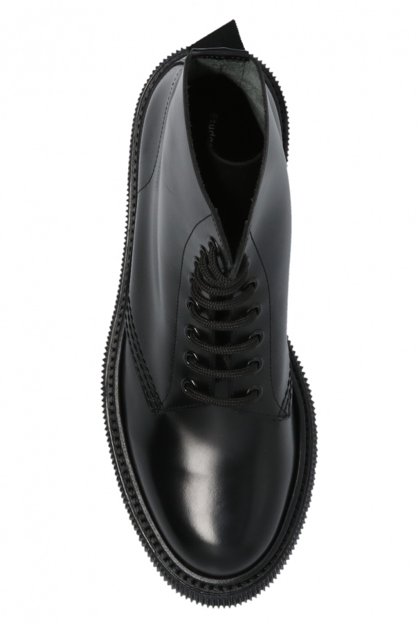 Black ‘Type 129’ ankle boots from Adieu Paris x Etudes. Crafted from leather, this lace-up model sits on a rubber sole and showcases distinctive stitching details and a silver-tone logo detail on the back.