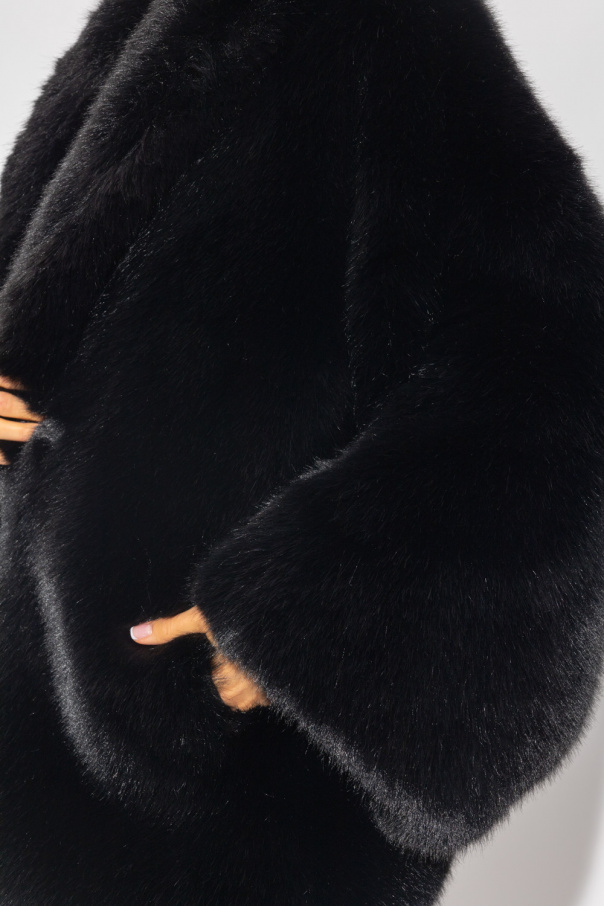 Black loose-fitting jacket from Saint Laurent. Crafted from faux leather, this item features hook fastenings and two front pockets.
