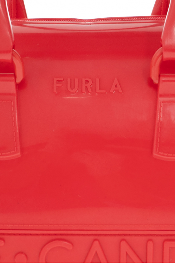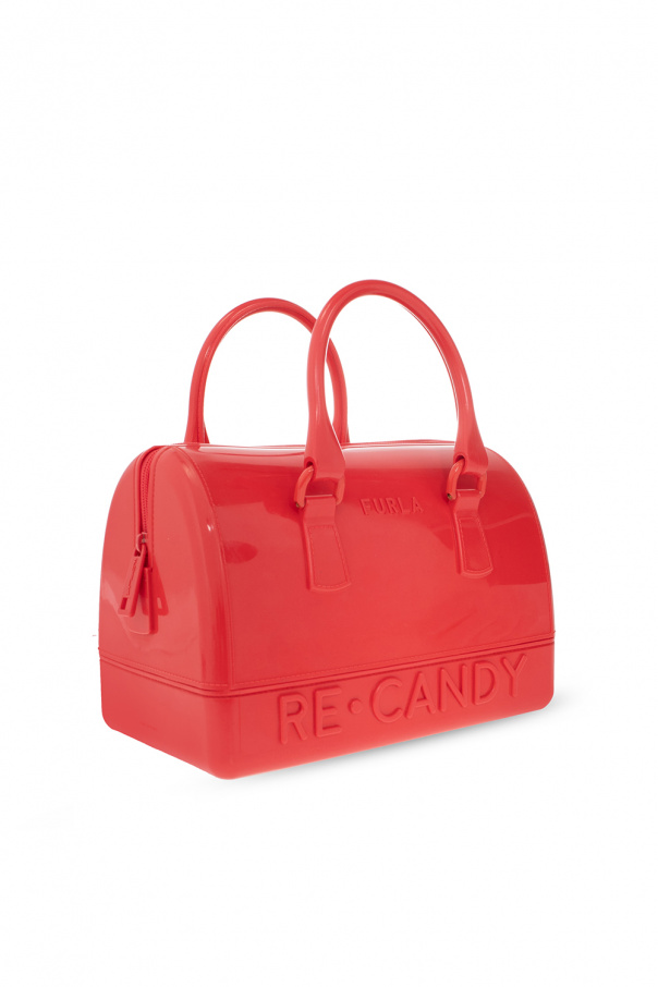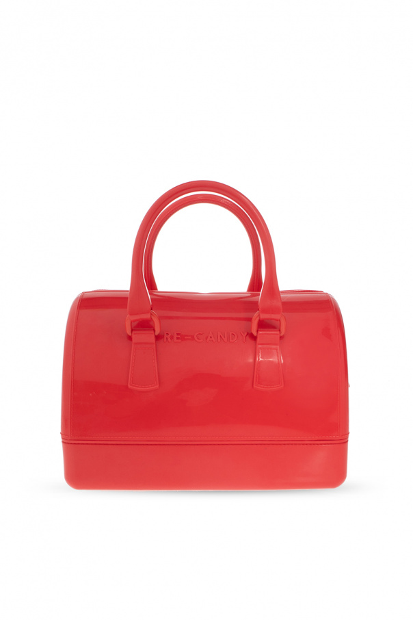 Red ‘Candy Small’ handbag from Furla. Made of recycled thermoplastic polyurethane gathered and restored from previously-produced materials. This model is complete with a zip, raised logo, two half-round handles and one internal compartment. Any small flaws in the material or surface are an intrinsic characteristic of this unique recycled material and process.
