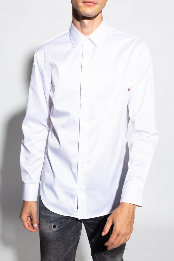 White shirt from Emporio Armani. Crafted from cotton, this garment features button fastenings and long sleeves with button cuffs.