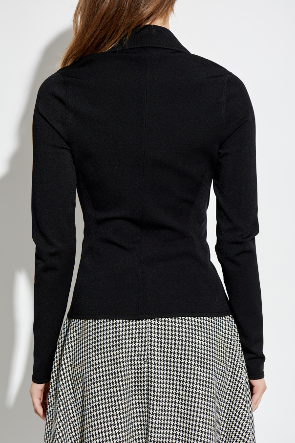 Introducing the Kardigan z logo, an exclusive cardigan designed for women by the illustrious brand Dolce & Gabbana. This sophisticated piece is meticulously crafted to accentuate the silhouette with its form-fitting design, long sleeves, and a classic collar. Rendered in a timeless black hue, the cardigan is made from a delicate, fine-knit fabric, ensuring both comfort and elegance. The front is adorned with a series of uniform black buttons, adding a touch of refinement. A subtle metal logo "DG" situated on the lower left side signifies the garment's high quality and designer pedigree. This versatile cardigan can be worn as a standalone piece or layered, making it an ideal addition to any wardrobe for various occasions. Its understated patternlessness enhances its adaptability and timeless appeal. Why Choose This Product? Expertly designed by the renowned Dolce & Gabbana Crafted from premium materials: Rayon, Polyester, Nylon, and Elastane Classic and elegant design with a form-fitting shape Versatile styling options for multiple occasions Subtle, sophisticated detailing with a metal "DG" logo