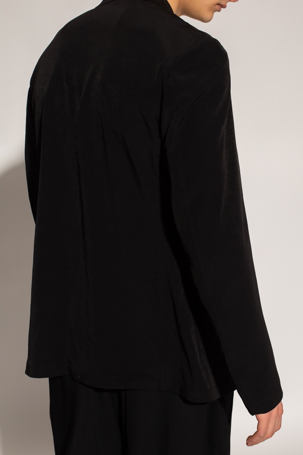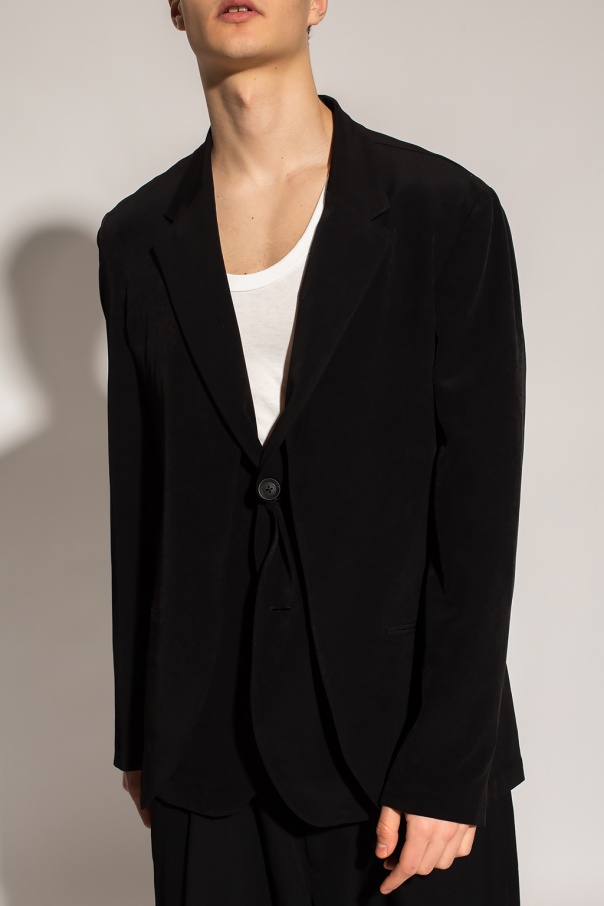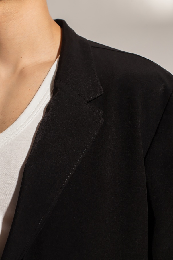 Black blazer with notch lapels from Y3 Yohji Yamamoto. Fastened with buttons, this garment features two front slip pockets.