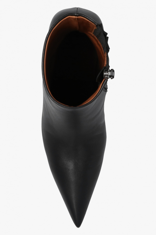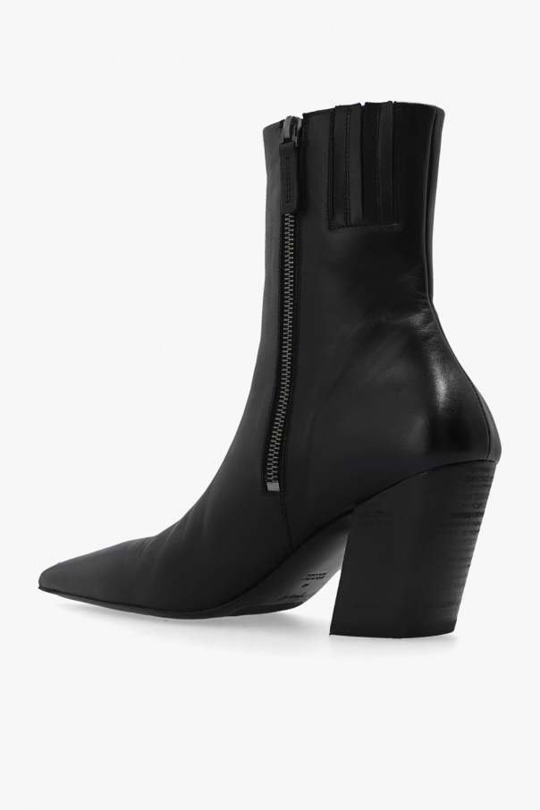 Black ‘Aghetto’ heeled ankle boots from Marsell. Crafted from calf leather, this pointed toe pair is complete with a side zip and black sole made of leather and rubber.