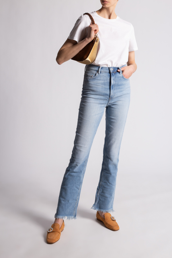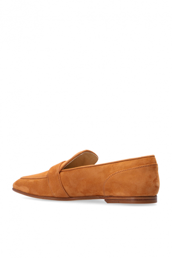 Light brown ‘Mani’ loafers from Jimmy Choo. Made of suede, this pair showcases a strap with a silver-tone buckle and embellishments and a brown and beige sole which was constructed from leather and rubber.