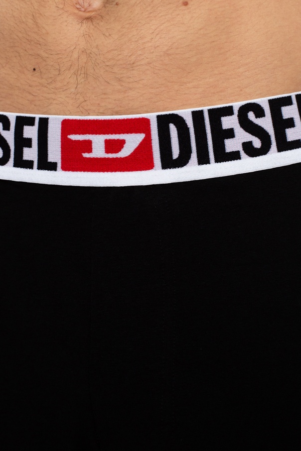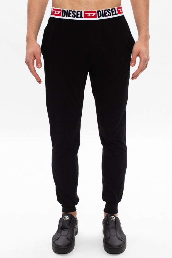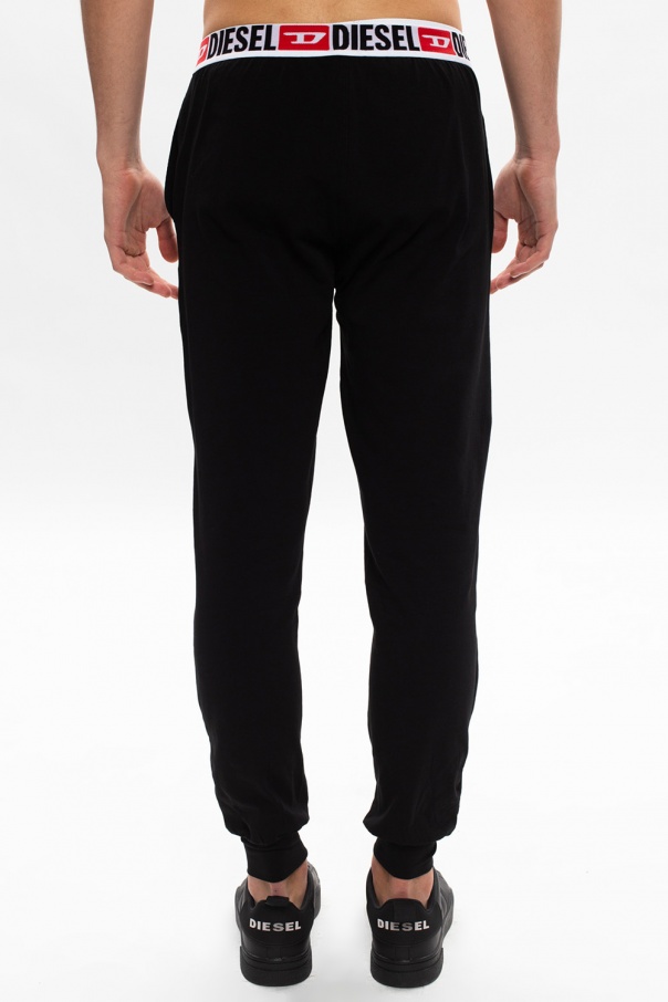 Black ‘UMLB-JULIO’ pyjama pants from Diesel. Crafted from cotton, this pair features an elastic waistband embroidered with a logo pattern in black and red as well as a ribbed hem.