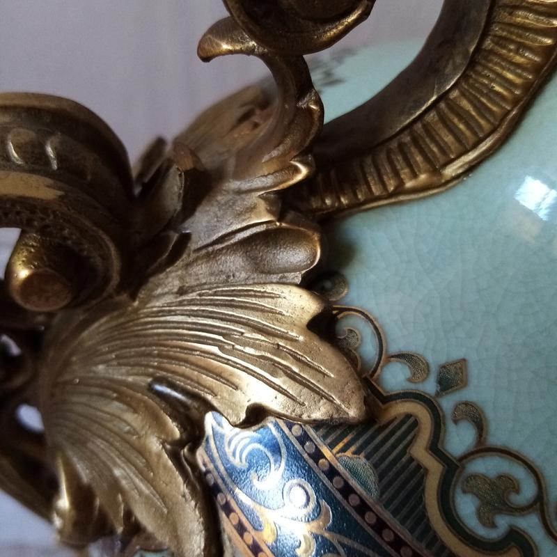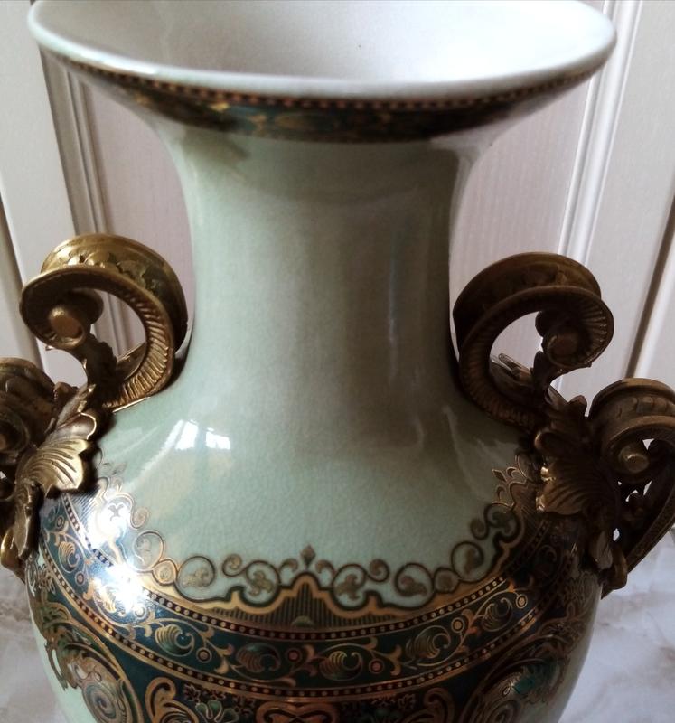 На вазе есть маленький мазок краски, дефект в росписи, видно на последнем фото.