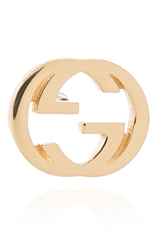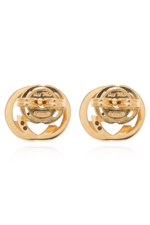 Earrings from Gucci. Made of 18k yellow gold, they secure with push back closures and showcase the brand's ‘Interlocking G’ logo.