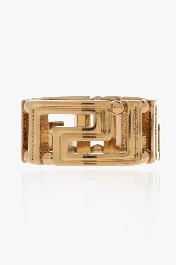 Gold-tone ring from Versace. Crafted from brass, this item is decorated with the brand’s signature Greca pattern.