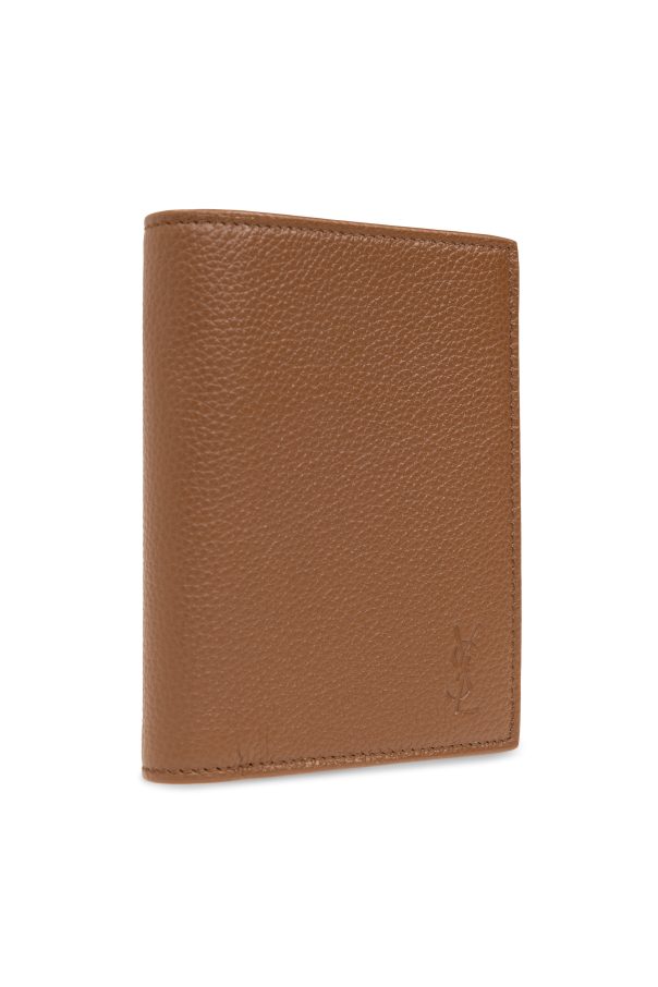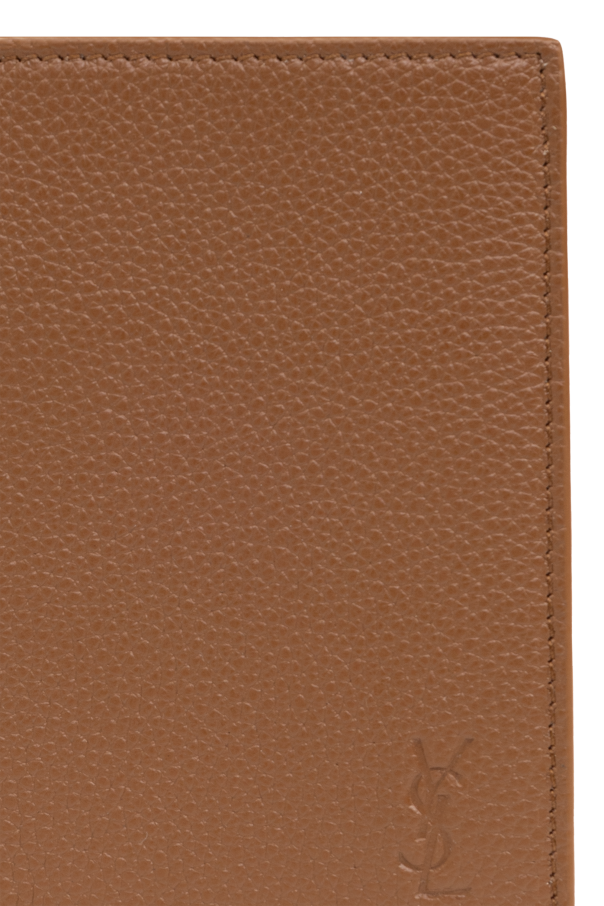 Introducing the epitome of refined elegance - the Saint Laurent Leather Folding Wallet. Crafted from premium calfskin leather, this exquisite accessory boasts a timeless, rectangular silhouette with softly rounded corners, enhancing its sophisticated allure. The wallet's rich brown hue and pronounced texture not only contribute to its aesthetic appeal but also its durability. The front of the wallet features a discreetly embossed Saint Laurent logo, a subtle yet recognizable hallmark for connoisseurs of the brand. This emblem of luxury is strategically positioned to maintain the wallet's sleek design while affirming its distinguished pedigree. Inside, the wallet reveals thoughtfully arranged compartments for cards and a dedicated space for banknotes, designed for utmost convenience and organization. The interior also bears the designer's name and the brand's origin, signifying the product's authenticity and exclusive heritage. Meticulous stitching and precisely finished edges further testify to the wallet's high craftsmanship, ensuring longevity and resistance to fraying. Why Choose This Product? Constructed from high-quality calfskin leather for durability and elegance. Features a discreet yet recognizable designer logo, signifying luxury. Offers efficient organization with its smartly designed interior compartments. Boasts meticulous craftsmanship, with attention to detail evident in every stitch. Embodies the exclusive heritage of Saint Laurent, enhancing its collectible value.
