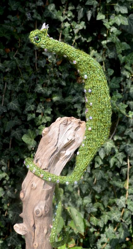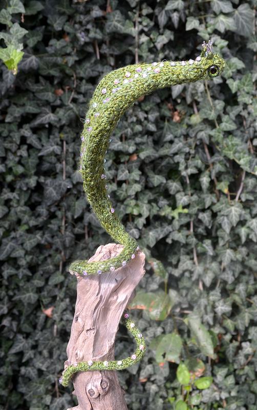 Каждая молния связана вручную, что делает ее неповторимой и особенной. Использованы сияющие перламутровые нити, оригинальные камни Сваровски, стеклянные глаза. Внутри проходит проводной каркас, позволяющий придать молнии любое желаемое положение в пространстве. Длина змеи около 70 см
