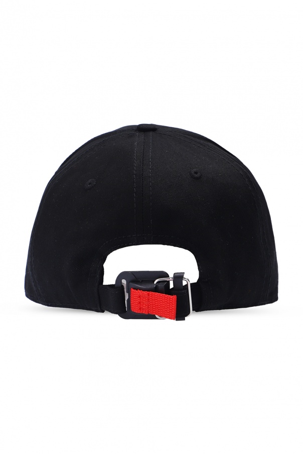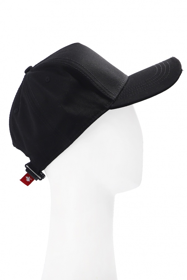 Black distressed baseball cap from Dsquared2. Made of cotton, this design features a white logo embroidery and magnetic closure at the back.
