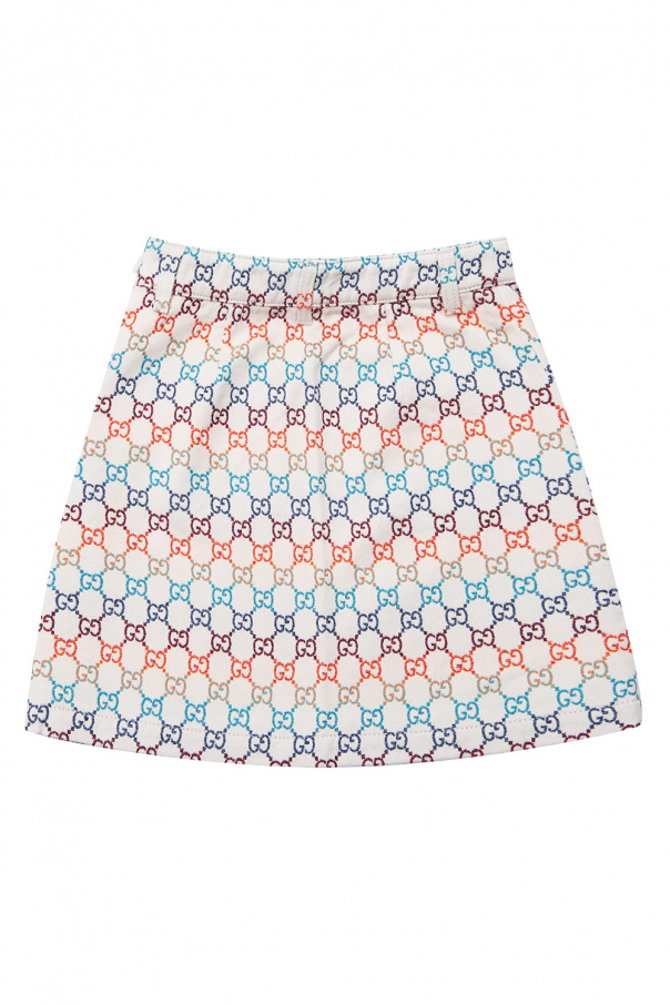 White and beige skirt from Gucci Kids. Made of cotton, this garment features a concealed back zip, adjustable waistband, two slip pockets, logo patch and embroidered multicolored monogram logo.