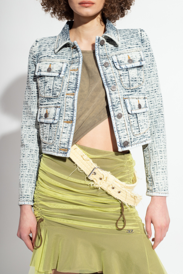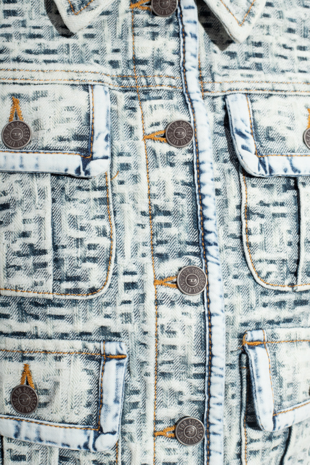 Light blue ‘DE-SLIMMY-FSB‘ denim jacket from Diesel. Made of textured cotton, this long sleeve design features button fastenings and four snap-fastened flap pockets.