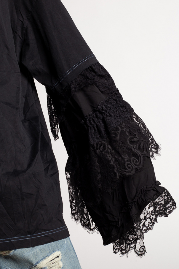 Black T-shirt from Balenciaga. Crafted from a lightweight technical cotton crepe with a texture, this style showcases long sleeves accentuated with lace panels.