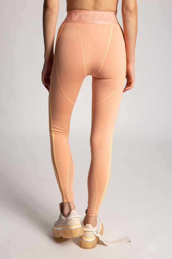 Light orange leggings from ADIDAS Originals x Ivy Park. This high-waisted pair has an elastic waistband with a logo, the label’s signature three side stripes, mesh inserts and decorative stitching details.