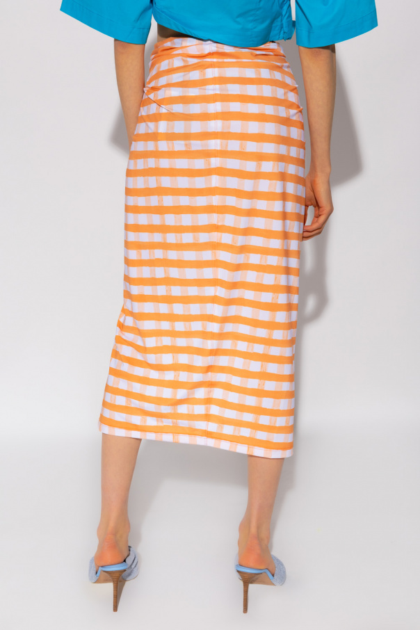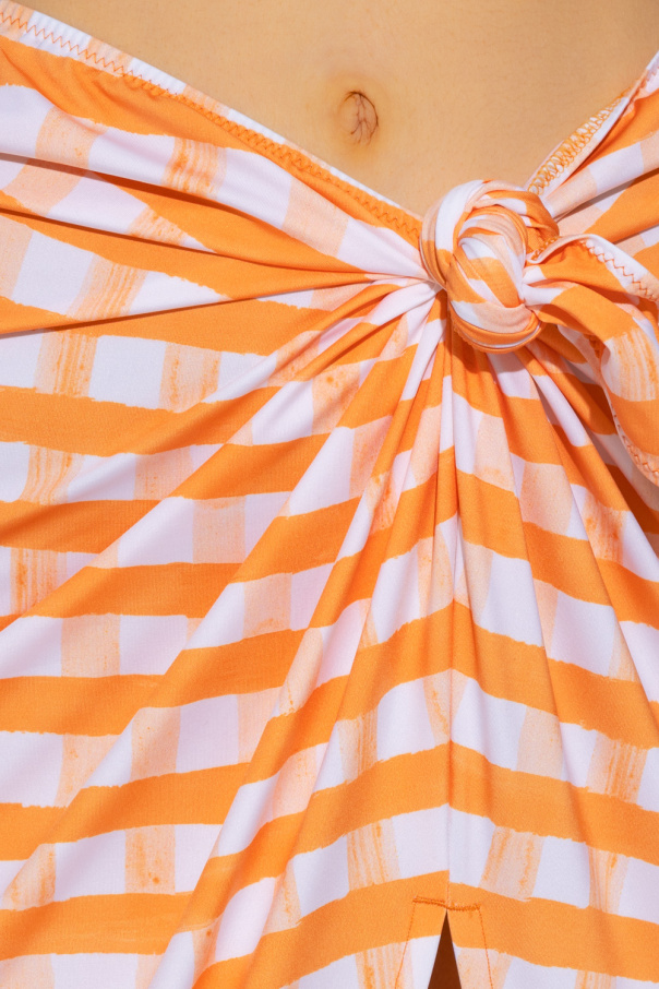 Orange and white midi pareo from Jacquemus. Crafted from partially recycled material, this style features an all-over watercolor check print, a self-tie closure and a side slit.