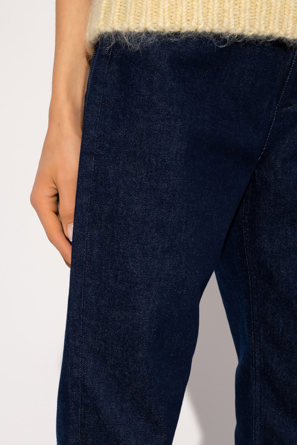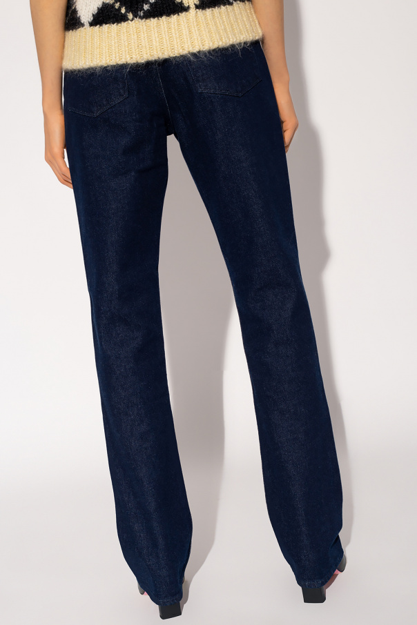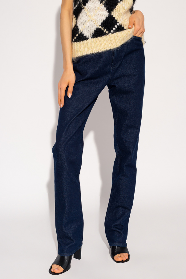 Navy ‘Aster’ jeans from Wandler. Fastened with a zip and button, this pair falls down with slightly flared legs and features three front pockets and two back pockets.