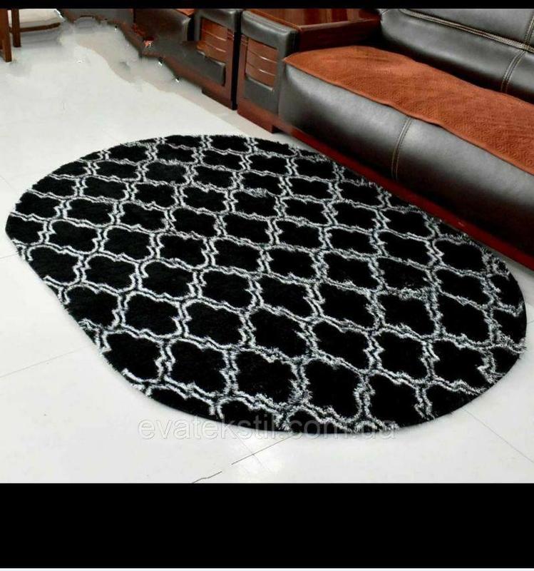 Хутровий ворсистий приліжковий килимок Травка (Овальний)