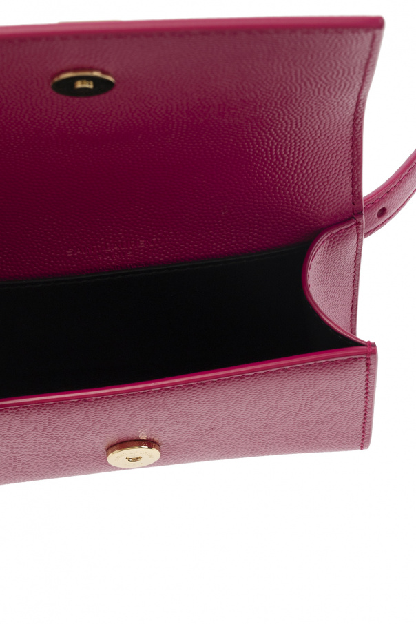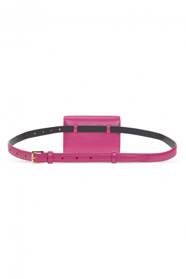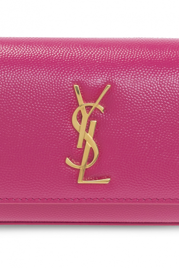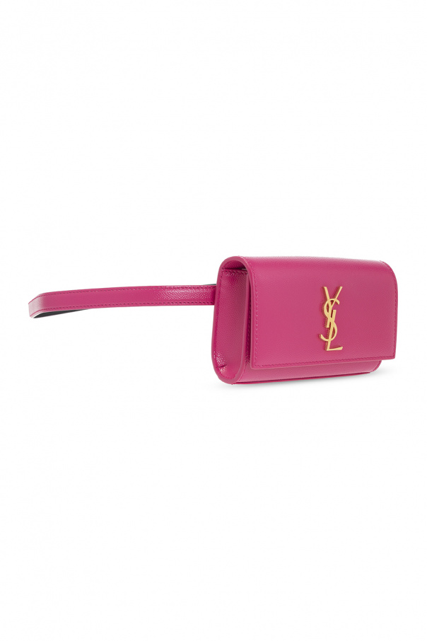 Pink ‘Kate Mini’ belt bag from Saint Laurent. Crafted from calf leather, this design secures with a magnetic snap and features metal YSL initials on the front, a detachable and adjustable strap and one internal compartment with a card slot.