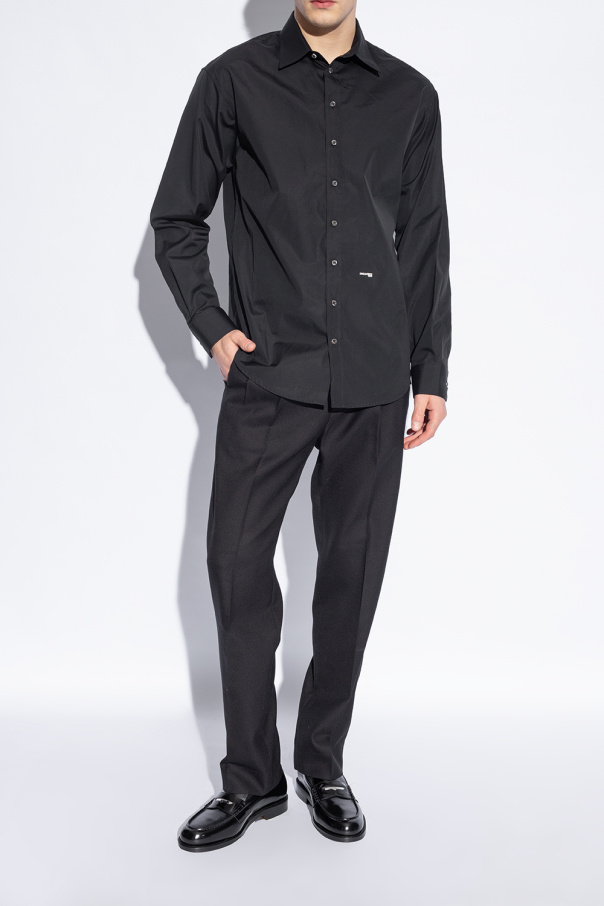 Black loafers from Dsquared2. Made of leather, this pair sits on a black leather sole and is decorated with a metal logo-engraved detail in silver-tone.