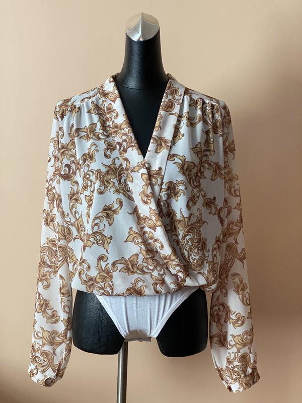 Элегантная блузка боди в актуальный принт в стиле versace.