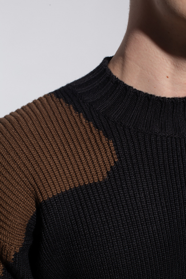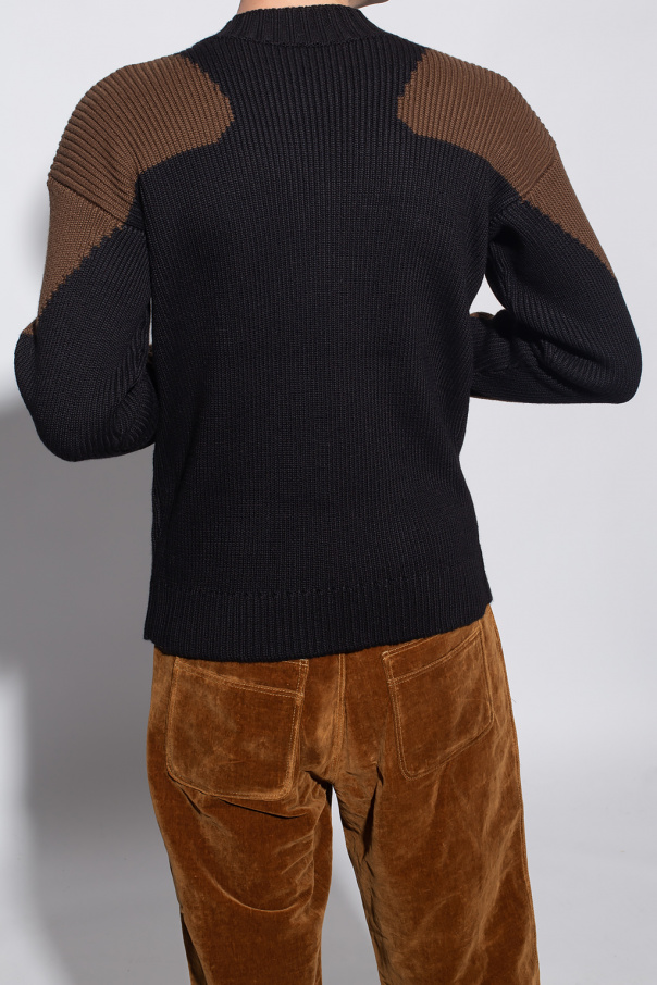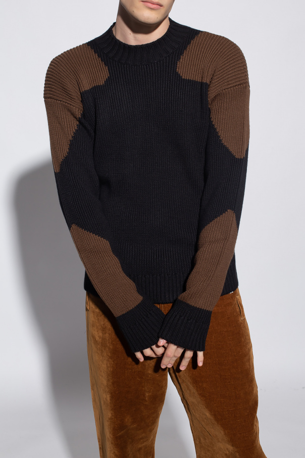 Black and brown crewneck sweater from Jacquemus. Crafted from a merino wool blend, this style features a ribbed stitch structure and elasticated edges.