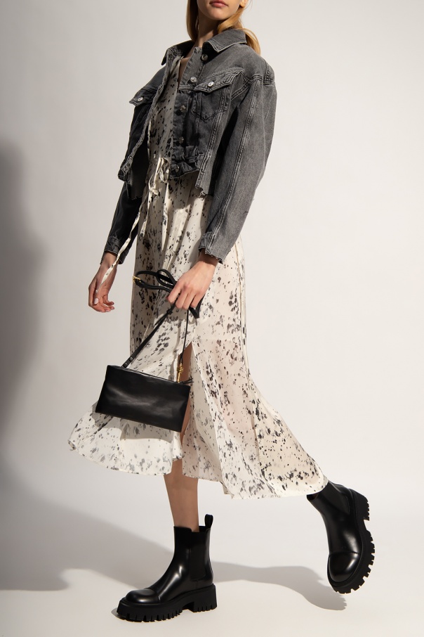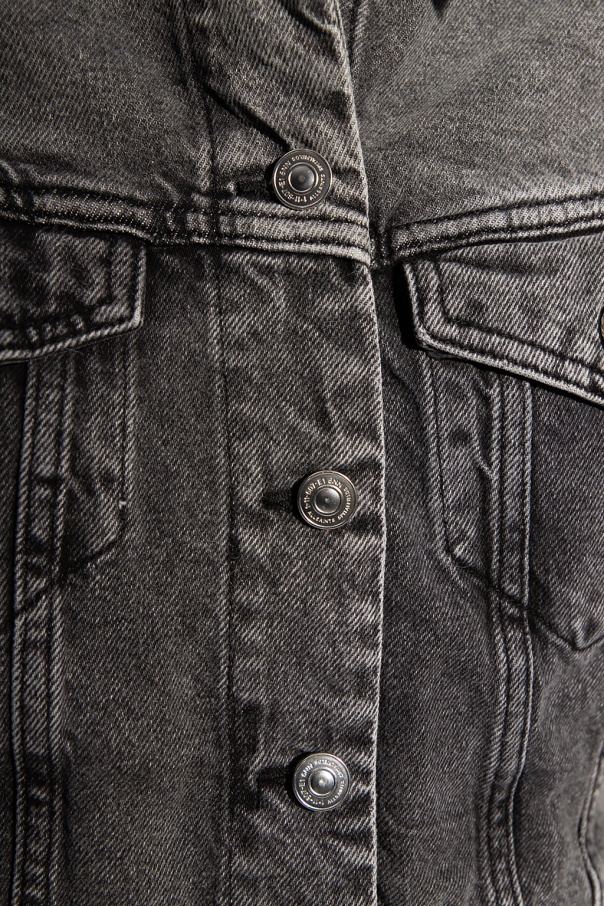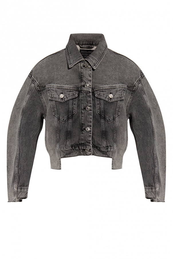 Grey ‘Two Tone’ denim jacket from AllSaints. Fastened with buttons, this asymmetrical design features button fastenings, raw cut edges and two buttoned flap pockets.