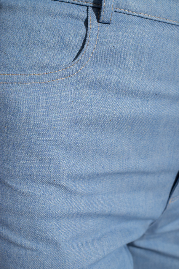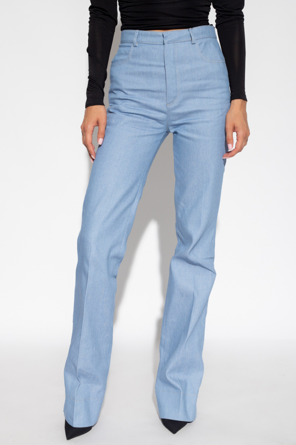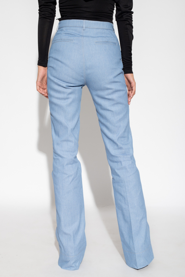 Blue jeans from Saint Laurent. Fastened with a zip, hook and button, this pair falls down with flared pleat-front legs, two front pockets and two back pockets.