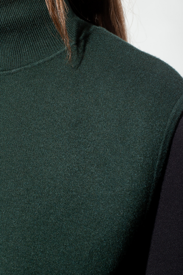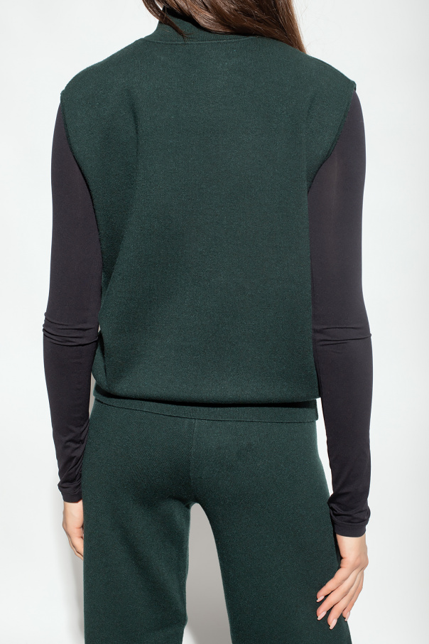 Dark green turtleneck vest with ribbed trims from Samsoe Samsoe. Made of a EcoVero viscose, polyester and polyamide blend.