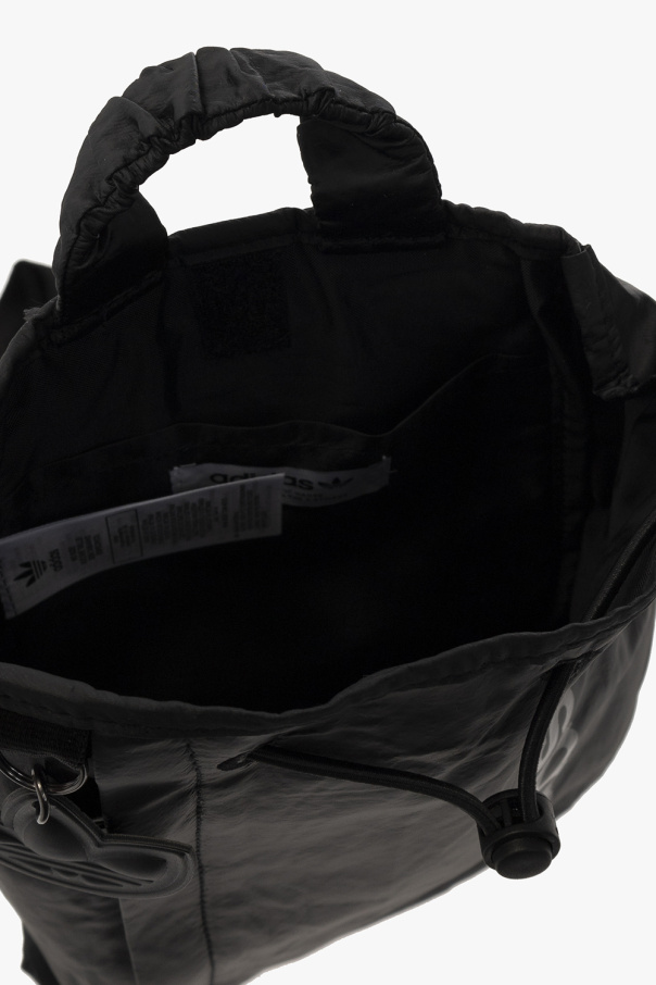 Black backpack from ADIDAS Originals. Emblazoned with a graphic print and logo appliqué, this design features a velcro fastening, a half-round handle, adjustable shoulder straps and a drawstring interior with a slip pocket.