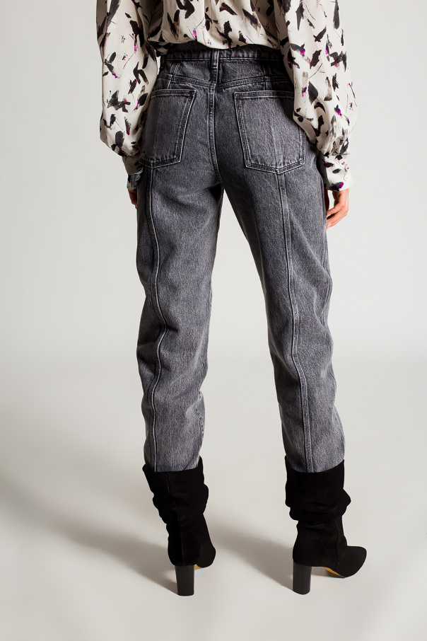 Grey jeans from Iro. Cut with a high-waisted silhouette, this pair features a zip fly with a button, four slip pockets and wide legs that taper towards the ankles.
