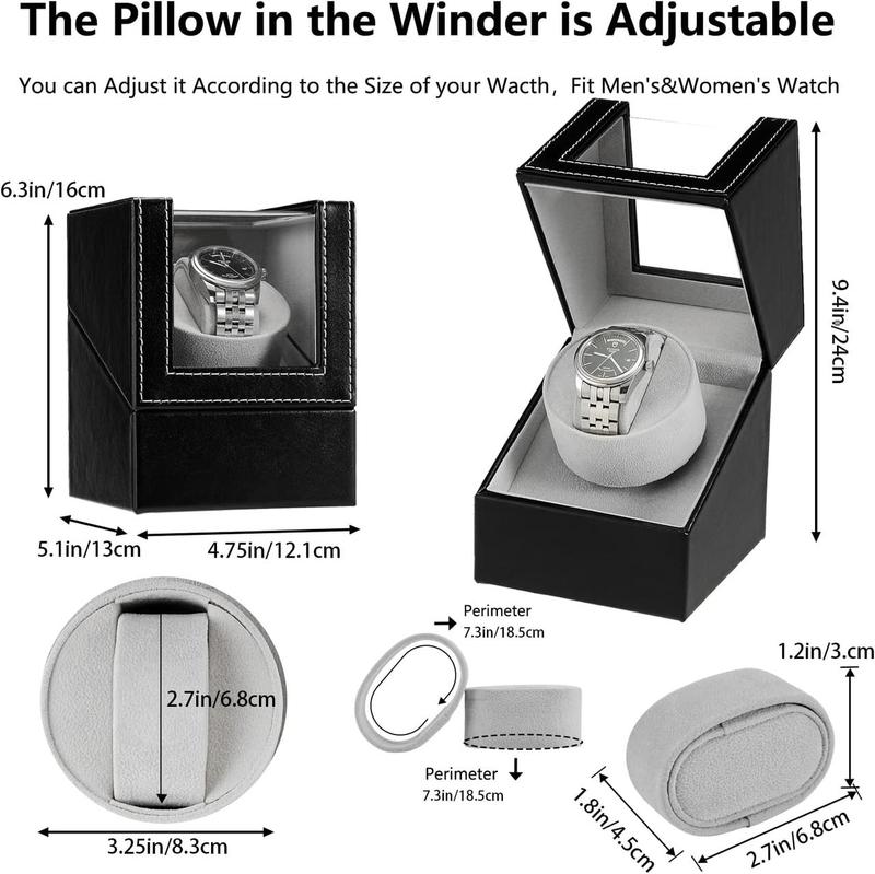 - Простий у використанні: просто натиснувши перемикач увімкнення/вимкнення, коробка автоматично заводить ваш годинник. Його можна використовувати з адаптером живлення 100-240 В (входить у комплект) або 2 батареями 1,5 В (не входять в комплект). Примітка: Акумулятор і адаптер не можуть працювати одночасно