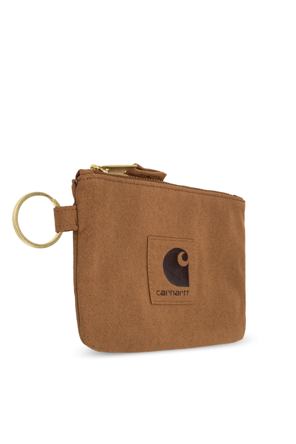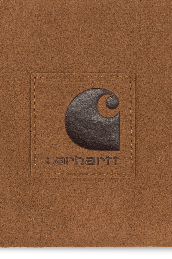 Introducing the exquisite Carhartt WIP Logo Satchel, a compact and chic accessory designed to elevate your everyday ensemble. Crafted with an innovative blend of nylon and polyurethane, this satchel mimics a sumptuous suede texture, complemented by a soft, tactile surface that's both inviting and durable. The satchel's rich brown hue is elegantly contrasted by a sleek black lining, creating a sophisticated palette. A rectangular, leather-embossed patch featuring the iconic Carhartt WIP logo adorns the front, embodying a blend of luxury and heritage. Gold-toned hardware, including a zipper closure, adds a touch of glamour, while a functional ring attached offers versatility for carrying or attaching keys. With its streamlined design and absence of extraneous fastenings, this satchel guarantees a seamless and secure experience. Its meticulous stitching and exceptional craftsmanship signal this piece as a premium offering from the renowned designer, Carhartt WIP. Why Purchase This Product? Elegant, suede-like material that balances luxury with practicality. Distinctive Carhartt WIP branding for an unmistakable touch of class. Convenient and secure zipper closure with a golden touch. Compact size, perfect for carrying essentials without the bulk. High-quality construction from a celebrated designer, ensuring longevity and enduring style.