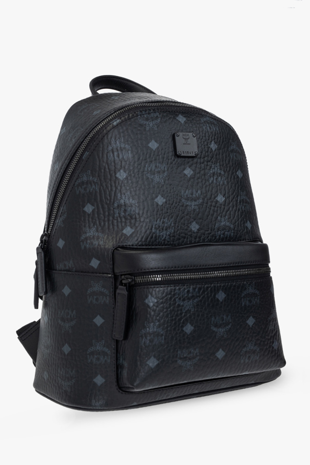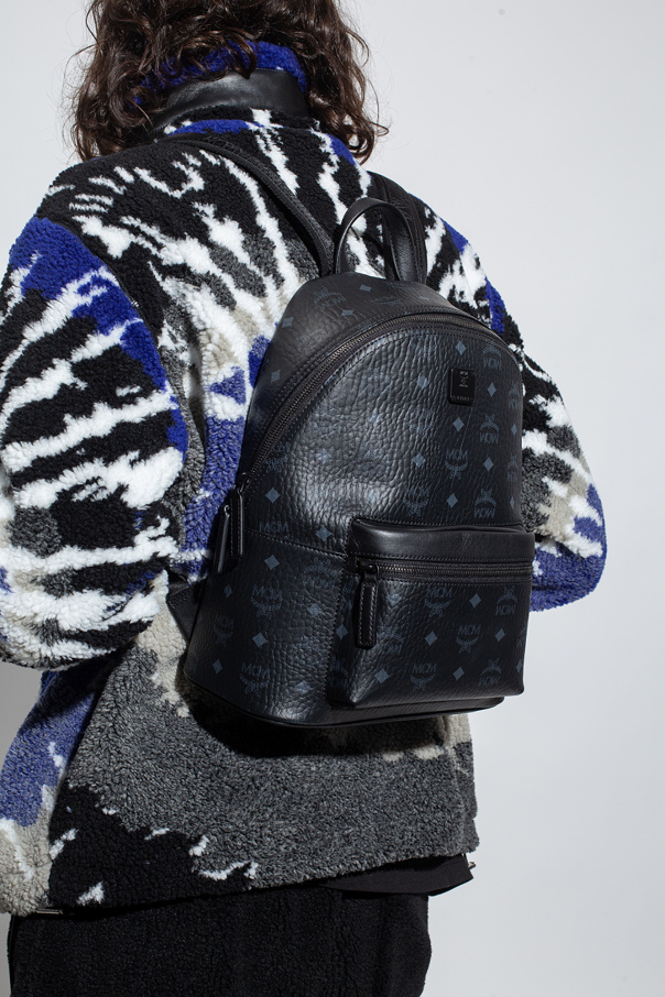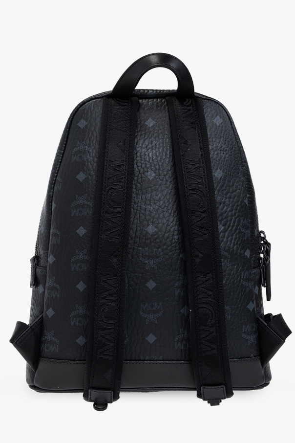 Black ‘Stark’ backpack from MCM. Made from nappa leather, this model features a two-way zip, Visetos logo pattern in grey, front zip pocket, logo appliqué, half-round handle, adjustable fabric straps and one internal compartment with one slip pocket and one card slot.
