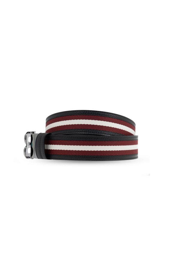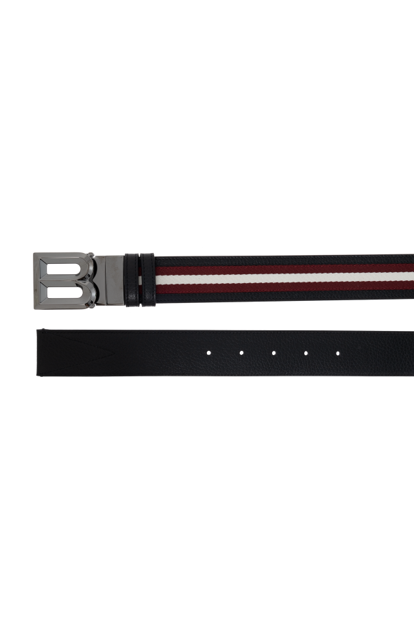 Introducing the Reversible Belt by Bally, an epitome of versatility and refined taste. Crafted with meticulous attention to detail, this distinguished accessory is designed to complement the wardrobe of the contemporary gentleman. The belt features a striking combination of colors: a dominant black hue paired with intricate white and red stripes on one side, offering a bold statement piece. The reversible design ensures a seamless transition between styles, catering to diverse occasions and preferences. Made from premium leather, the belt promises durability and an exquisite feel. The large, metallic buckle, rectangular with rounded corners, is polished to a high sheen, adding a touch of sophistication. Additionally, the belt's adjustable nature and a cleverly engineered rotating mechanism allow for a perfect fit and effortless interchangeability. Why purchase this product? Experience the luxury of high-quality leather, known for its longevity and elegance. Enjoy two distinct styles with the innovative reversible design. Adjustable features and a sleek, shiny buckle ensure both comfort and style. The absence of visible branding or logos speaks to the belt's minimalist and versatile design, allowing it to blend seamlessly with any outfit.